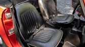 The car was factory-finished in Signal Red (25) and features a replacement black canvas Robbins top installed in 2017. Brightwork includes a chrome grille, bullet-style driver’s mirror, a trunk-mounted luggage rack, and bumpers with overriders.