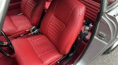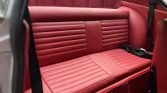The front bucket seats and rear bench are trimmed in red leather, and interior appointments include a padded dashboard, a rear parcel shelf, a Volvo-branded stereo, flow-through ventilation, and a heater. The carpets are replacements.