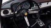 The bolstered bucket seats have been reupholstered in black, and the white dashboard is equipped with black upper and lower pads. Black carpeting with Alfa-logo mats covers the floors, while a rubber mat has been fitted in the trunk.