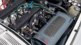 The 2.0-liter twin-cam inline-four with SPICA mechanical fuel injection was rebuilt by Sports Imports of Ventura in California before installation in 2018. Parts utilized include 11mm-lift camshafts and replacement pistons, rod bearings, main bearings, valve guides, intake manifold, fuel pump, and exhaust. Work in 2020 consisted of a tune-up, changing the fluids, installing an electronic ignition system, setting the timing, and replacing some fuel hoses. Later that year a wiring harness for the alternator was fabricated and the battery cables, throttle cable, and hood-release cable were replaced.
