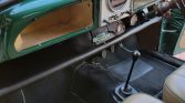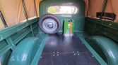 The right-hand-drive cabin was fitted with replacement seats that have been reupholstered in tan vinyl with green piping. The dashboard storage bins have also been retrimmed, and the truck is fitted with roll-up windows and seat belts. An additional set of all-weather floor mats will aLompany the car.