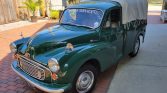 This 1969 Austin Minor is an 8cwt pickup that was refurbished in England in 2000 during previous ownership and subsequently acquired by the owner and imported into the US in October 2011. The truck is finished in green over tan vinyl and is powered by a retrofitted 1,275L inline-four paired with a four-speed manual transmission. Equipment includes a beige canvas top, painted 14” steel wheels, and dual fender mirrors. Service in 2021 included cleaning and tuning the carburetors.