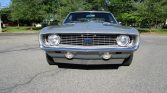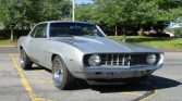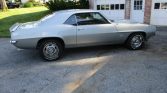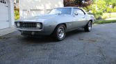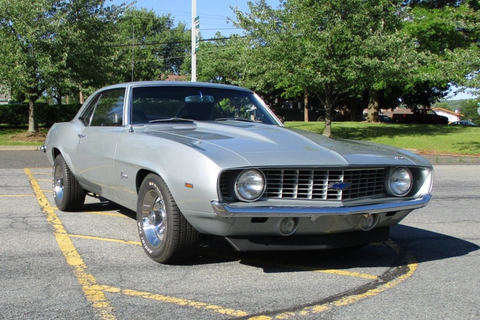 This 1969 Chevrolet Camaro coupe is finished in silver over a black interior, and power comes from a replacement 427ci V8 paired with a four-speed manual transmission. A refurbishment in the style of a COPO tribute is said to have been completed on the car in the fall of 2020 that consisted of bodywork and a repaint as well as replacement of the gas tank, fuel sending unit, radiator, and suspension, brake, and driveline components. Additional equipment includes a 12-bolt rear axle, 15″ Rally wheels, front and rear spoilers, power steering, power-assisted front disc brakes, a Hurst shifter, and a push-button AM radio.