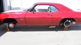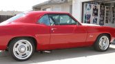 The 17″ Rally-style wheels are mounted with 235/45 front and 245/40 rear Ironman iMove Gen 2 tires. Suspension modifications include a TCI four-link rear suspension kit as well as Strong Arm tubular control arms and adjustable shocks. Braking is handled by Wilwood four-wheel disc brakes with six-piston front calipers and four-piston rear units.