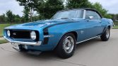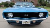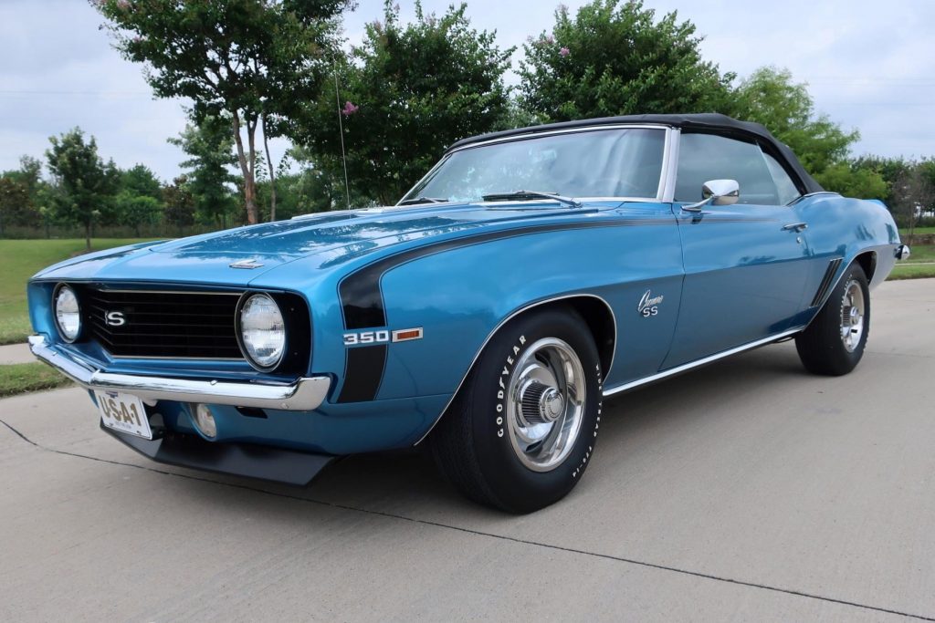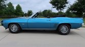 This 1969 Chevrolet Camaro convertible was built on February 28, 1969 and delivered new to Lustine Chevrolet of Hyattsville, Maryland. It was refurbished during the 1990s and acquired by the seller around a year ago. Finished in metallic blue with a black soft top over matching vinyl upholstery, the car is powered by a 350ci V8 paired with a Muncie four-speed manual transmission and a Positraction differential with 4.10:1 gearing. Equipment includes black hockey stick side stripes,…
