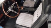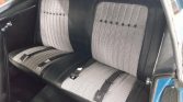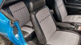 The factory seating was retrimmed in black vinyl with houndstooth cloth inserts as part of the 2021 refurbishment, and a replacement dashboard, rear shelf, door panels, and carpeting were installed. Lap belts are provided for the front and rear seats, and additional features include wood trim, a white shift knob, manually-operated windows, and a factory AM/FM radio.