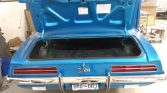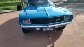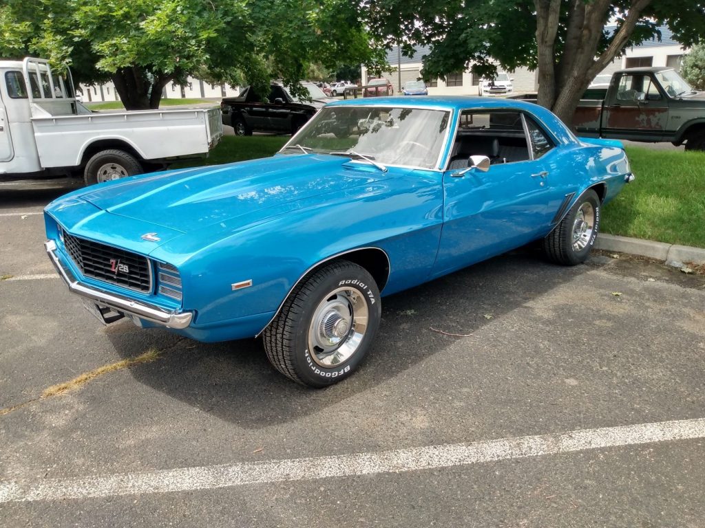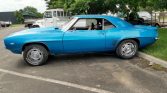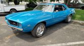 This 1969 Chevrolet Camaro Z/28 RS was acquired by the seller in 2011 and underwent a body-off refurbishment that included media blasting the body, rust repair, a repaint, refurbishing the interior, rebuilding the brake and suspension systems, and replacing the gauges, steering wheel, wiring harness, brake lines, fuel system, and exhaust system. The car is finished in LeMans Blue over two-tone black and powered by a 383ci stroker V8 paired with a Tremec five-speed manual transmission. Equipment includes 15″ rally-style wheels, a rear spoiler, chrome bumpers, front disc brakes, a March Performance belt drive, and an AM/FM radio.