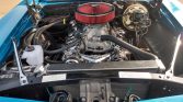 The GM crate 383ci stroker V8 is equipped with a March Performance belt drive system, Holley dual-feed carburetor, polished Chevrolet valve covers, ceramic coated Hooker headers, a Be Cool aluminum radiator, and a pair of electric cooling fans.