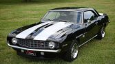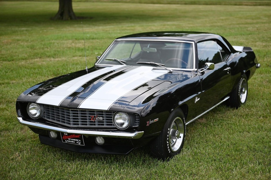 This 1969 Chevrolet Camaro Z/28 has been refinished in black with white stripes over a black vinyl interior, and its 302ci V8 is paired with a four-speed manual transmission and a 12-bolt rear axle. Other equipment includes a limited-slip differential, 15″ Rally wheels, front disc brakes, a tachometer, and an AM/FM radio. The car was built in April 1969 and delivered new to Briggs Chevrolet of South Amboy, New Jersey. The seller acquired the car out of Washington in 2002 and has since moved it to Kansas. Service over the past seven years has included replacing steering components, the front and rear springs, door locks, window cranks, the exhaust, ignition components, heater hoses, and the fuel pump. Other items were replaced to address incorrect components noted by Jerry MacNeish of Camaro Hi-Performance Inc following an inspection in 2018.