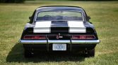 The car was delivered new in Burnished Brown (61-61) and has been refinished in black with white stripes that extend over the cowl-induction hood as well as the trunk lid and rear spoiler.