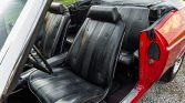 The cabin features front bucket seats and a rear bench trimmed in black vinyl with a matching console, dash, carpets, and door panels. Additional interior appointments include lap belts, seat headrests, manual windows, black SS carpeted floor mats, and a push-button AM radio.