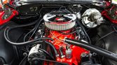 The 396ci V8 was factory rated at 350 horsepower and is equipped with a four-barrel carburetor.