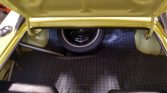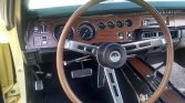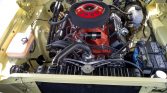 The interior features replacement black vinyl upholstery sourced from Legendary Auto Interiors of Newark, New York, and woodgrain trim and brushed-aluminum accents adorn the dashboard and center console, the latter of which houses the floor shifter for the three-speed automatic transmission. Additional equipment includes power steering, an AM radio with an 8-track player, a 6-way adjustable driver’s seat, and a Tic-Toc-Tach.