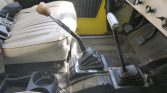 A Grant GT steering wheel sits ahead of an aftermarket tachometer and a 100-mph speedometer with readouts for voltage, fuel level, coolant temperature, and oil pressure. The fuel-level gauge does not work. The five-digit odometer shows 10k miles, approximately 3k of which were added by the seller. Total mileage is unknown.