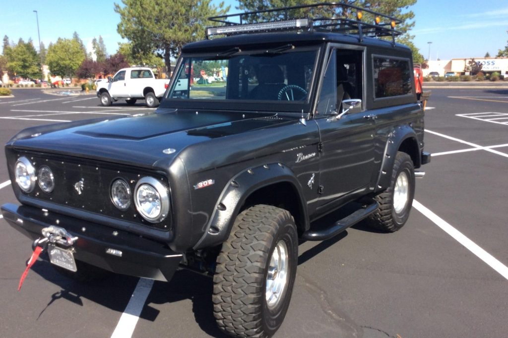 This 1969 Ford Bronco was acquired by the seller in 2017, and it subsequently underwent a body-off refurbishment that included a repaint in metallic gray, installation of Buick-sourced black leather seats, and replacement of the driveshafts, axles and differentials, suspension, steering components, body panels, wiring harness, fuel tank, and more as detailed below. The truck is powered by a replacement 302ci V8 paired with a four-speed manual transmission and a rebuilt dual-range transfer case. Additional equipment includes a removable black hardtop, lifted suspension, a winch, a roof rack, a swing-away rear carrier, a Bluetooth-capable retro-look stereo, and a dual exhaust system.