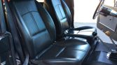 The cabin features power-adjustable front seats trimmed in black leather and sourced from a Buick, a silver powder-coated dashboard, and floors coated with spray-on bed-liner. Appointments include vinyl floor coverings, a removable front center storage console, hand-crank windows, a folding rear bench with underseat storage, and a Bluetooth-capable RetroSound stereo with auxiliary inputs and aftermarket speakers. The doors and rear quarter panels were reportedly lined with sound deadening material, and the shift knobs, headliner, wiper covers, window cranks, heater box and core, dash pad, switch panel, and headliner were replaced.