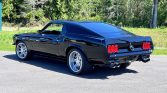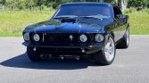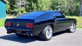 This 1969 Ford Mustang Mach 1 was refurbished and modified, with work including installing a 5.0-liter Coyote V8 and replacing and repairing body panels before a repaint in black. Power is routed through a Tremec six-speed manual transmission and a Currie 9″ rear end, and the car rides on Heidts adjustable coilovers and 17″ American Racing Shelby wheels over Wilwood discs. The cabin was reupholstered in orange and quilted black leather, and…