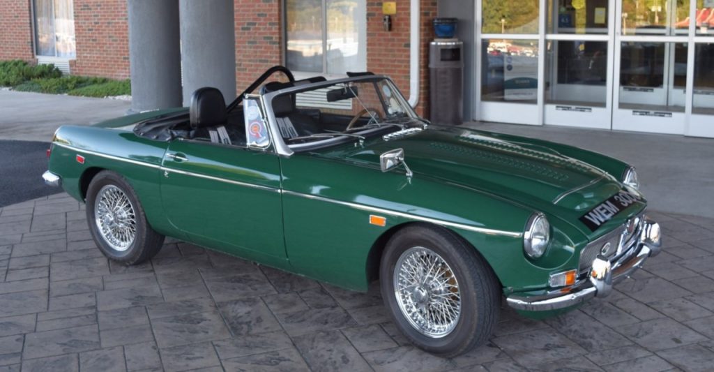 This 1969 MGC roadster is finished in British Racing Green over black upholstery and powered by a modified 2.9-liter inline-six mated to a four-speed manual gearbox with electronic overdrive. The car was reportedly acquired by the current owner in 1981 and has since been repainted and fitted with a roll bar, four-point harnesses, upgraded suspension components, and a modified brake system. Additional equipment includes a black soft top, triple Weber DCOE carburetors, and 15″ knock-off wire wheels.…