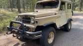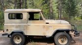 This 1969 Nissan Patrol is finished in beige over black vinyl and is powered by a 4.0-liter inline-six paired with a three-speed manual transmission and a two-speed transfer case. Equipment includes a power take-off winch, inward-facing cargo-area jump seats, and a removable hardtop. The truck was acquired by the seller in 2019, reportedly out of Idaho, and maintenance carried out in 2020 reportedly included rebuilding the carburetor as well as replacing a clutch cylinder, battery, spark plugs, and fuel pump.