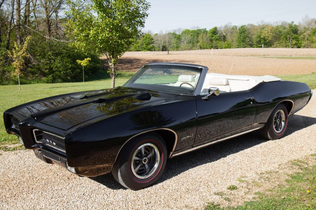 This 1969 Pontiac GTO convertible was delivered new to Star Pontiac of Washington, D.C. and is said to have undergone a refurbishment some time during previous ownership. It was acquired by the current owner approximately two years ago and is finished in Starlight Black with a power-operated Ivory soft top over Parchment vinyl. Power is provided by a numbers-matching 400ci V8 paired with a four-speed manual transmission. Additional features include a push-button AM/FM radio with an eight-track player, a hood-mounted tachometer, Hide-Away headlights, power-assisted steering and front disc brakes, and electric windows.