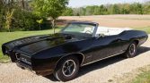 This 1969 Pontiac GTO convertible was delivered new to Star Pontiac of Washington, D.C. and is said to have undergone a refurbishment some time during previous ownership. It was acquired by the current owner approximately two years ago and is finished in Starlight Black with a power-operated Ivory soft top over Parchment vinyl. Power is provided by a numbers-matching 400ci V8 paired with a four-speed manual transmission. Additional features include a push-button AM/FM radio with an eight-track…
