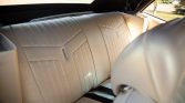 The cabin features bucket seats trimmed in Parchment vinyl along with matching door panels and a black dashboard and carpets. Amenities include a center console, a push-button AM/FM stereo with an eight-track player, electric windows, and power-assisted steering.