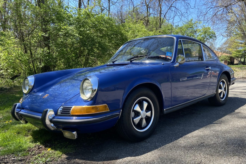 This 1969 Porsche 911T was originally sold in June 1969 by Breton Motors in Rochester, New York and is said to have remained with the original owner until 2015. It is finished in Ossi Blue over a black interior and is powered by a numbers-matching 2.0-liter flat-six paired with a five-speed manual transaxle. Equipment includes front fog lights, Turbo tie rods, a Bursch exhaust system, Koni shocks, 14” Fuchs wheels, and a push-button AM/FM radio. The seller…