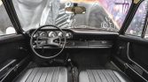 The cabin features seats trimmed in black upholstery along with a matching dashboard, door panels, carpets, and floor mats. The dashboard houses heater controls and a lockable glovebox.