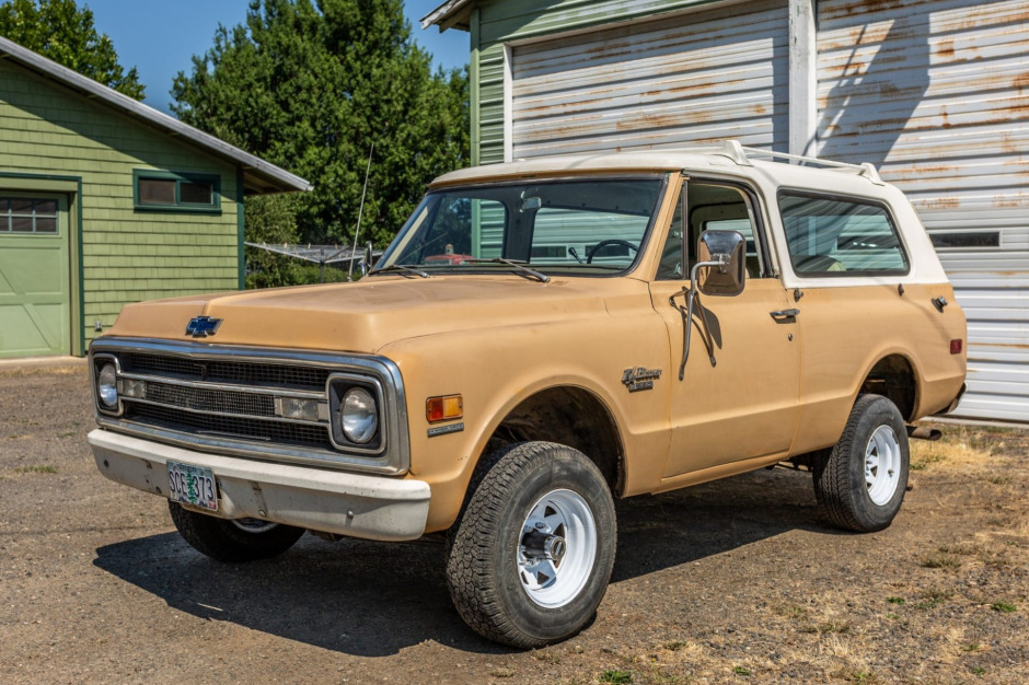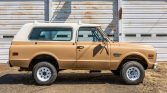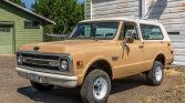This 1970 Chevrolet Blazer K5 CST is finished in tan over tan vinyl and powered by a 350ci V8 mated to a three-speed automatic transmission and a two-speed transfer case. Features include a white removable hardtop, white-finished 15″ steel wheels, a 40-gallon auxiliary fuel tank, a transmission cooler, air conditioning, and a push-button AM radio. The truck was reportedly sold new by Felix Chevrolet in Los Angeles, California, and remained in storage for several years prior to the seller’s acquisition in February 2021.