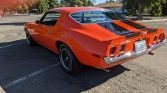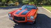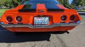 Finished from the factory in Hugger Orange (65), the car was repainted over two decades ago. Exterior features include a blacked-out front grille, black over-the-top racing stripes, front and rear lip spoilers, split chrome front bumpers, and Z28 badging.