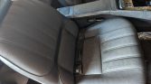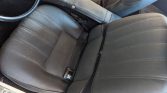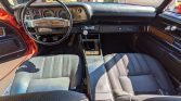 The cabin features seats trimmed in black vinyl along with a matching dashboard, door panels, and carpets. Lap belts are fitted for all occupants, and amenities include a center console as well as an aftermarket AM/FM stereo wired to a trunk-mounted CD changer.