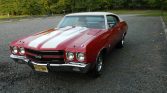 This 1970 Chevrolet Chevelle SS 396 coupe was first delivered to Madisons Chevrolet of Scottsdale, Arizona, and it reportedly spent time in Florida prior to the seller’s acquisition and relocation to New Jersey in 2020. Finished in red with a white roof and stripes, it is powered by a replacement 402ci V8 mated to a three-speed automatic transmission and a Positraction rear end. Features include Ivory vinyl upholstery, HEI ignition components, a performance suspension, front disc brakes, SS-style wheels, Vigilite lamp indicators, and air conditioning.