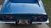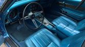 The car was factory finished in Bridgehampton Blue Poly (979) and is said to have undergone a repaint some time in the 1980s. Exterior features include a body-colored removable roof panel along with a cowled hood with 454 badging.