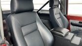 The high-back front bucket seats and the rear bench are upholstered in black leather, and bedliner material has been applied to the floors. Diamond-plate trim accents the cabin, and appointments include rubberized floor mats, a Hurst transfer-case shifter, a Tuffy locking center console, a bolt-in roll bar, a Vintage Air heater, and an Edelbrock EFI module mounted in the glove compartment.