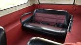 The cabin features front bucket seats and a rear bench trimmed in black upholstery with burgundy inserts. The floors have been sprayed with red bedliner material, and additional equipment includes a heater and front and rear lap belts.