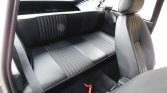 The interior features replacement high-back bucket seats and a rear bench upholstered in black vinyl with matching door panels and carpets. Amenities include a later-style dash pad, three-point front seat belts, a replacement headliner, a heated rear window, and an AM/FM stereo with Bluetooth connectivity.