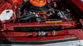 The replacement 440ci V8 is said to have been sourced from a 1969 model year vehicle. The functional Air-Grabber hood scoop funnels clean air by vacuum actuation into the four-barrel carburetor. The oil has been changed in preparation for sale.