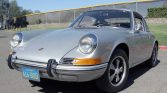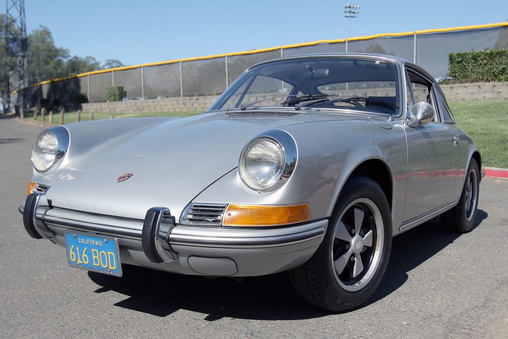 This 1970 Porsche 911T coupe was delivered new to Mozart Porsche/Audi of Palo Alto, California and was acquired by the current owner in July 1971. Finished in silver over black leatherette, the car is powered by a 2.2-liter flat-six paired with a five-speed manual transaxle. Equipment includes a Blaupunkt AM/FM cassette stereo, “sugar scoop” headlight rings, four-wheel disc brakes, and 15” Fuchs-style alloy wheels.