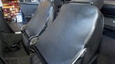 The cabin features seats trimmed in black leatherette with a matching dashboard, door panels, and salt-and-pepper carpets that were replaced in 2009. Amenities include a VDO analog clock, a locking glovebox, and a Blaupunkt AM/FM cassette stereo. Wear is noted on the driver’s seat, and the driver-side map pocket is loose per the seller.