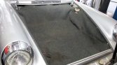 The car was finished in silver (8080) from the factory and was repainted in June 1977. Exterior features include bumper overriders, US-spec chrome “sugar scoop” headlight surrounds, and blue six-digit California license plates at either end.