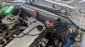The 2.8-liter M30 inline-six was removed from the car during the refurbishment and fitted with dual Weber DEGV carburetors. A new battery, hoses, spark plugs, wires, ignition components, and a hood liner were installed in 2021, along with a rebuild of the alternator and a recoring of the radiator.
