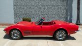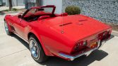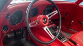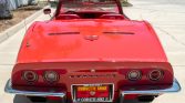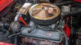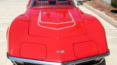 The fiberglass body is finished in Mille Miglia Red (973) and features pop-up headlights, chrome split rear bumpers, rectangular dual exhaust outlets, and LT-1 hood graphics and badging.
