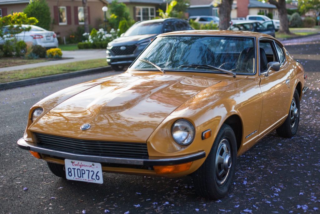 The 14″ steel wheels feature Datsun hubcaps and wear Starfire RS-C 2.0 tires. The seller states that the brake fluid was flushed under current ownership.
