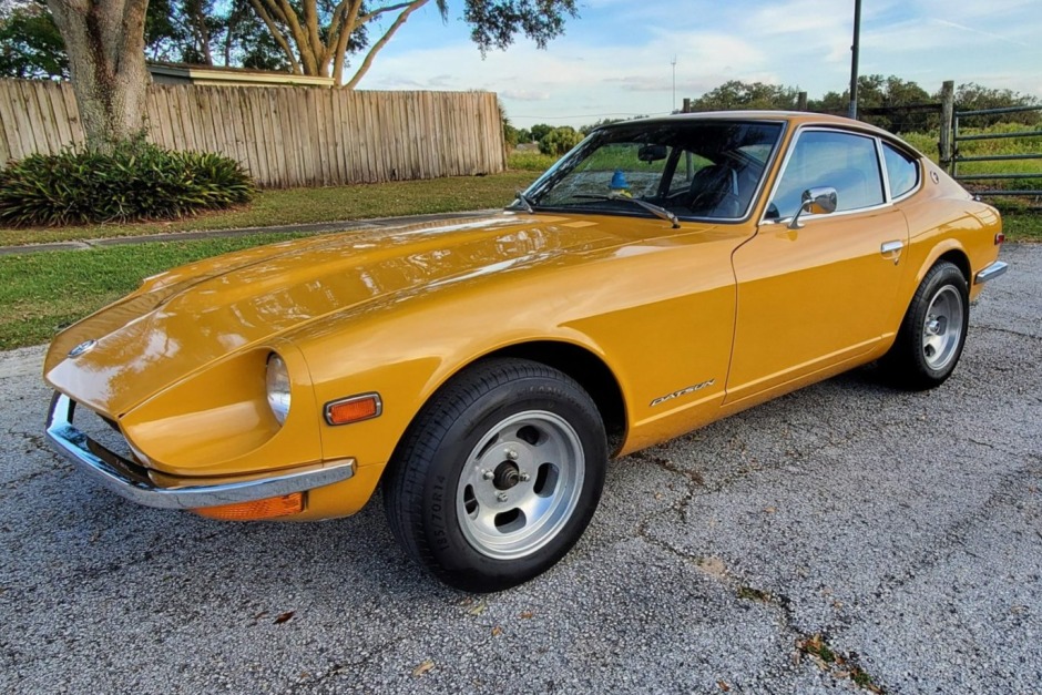 This 1971 Datsun 240Z is finished in gold over black vinyl and is powered by a 2.4-liter inline-six paired with a four-speed manual transmission. This example is equipped with SU carburetors, 14″ alloy wheels, side mirrors, chrome bumpers, a wood shift knob, and a wood-rimmed steering wheel. A refurbishment consisting of a repaint and an interior refreshment was commissioned after car was acquired by the seller in 2016. Work completed under current ownership consisted of replacing the clutch, flywheel, and thermostat as well as reconditioning the radiator.