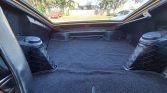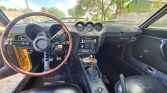 The cabin features bucket seats trimmed in black vinyl with a matching dashboard, door panels, and carpets. Amenities include a locking glove box, center console, and a wood shift knob. Work performed during the refurbishment is said to have included replacing the carpets and reconditioning the dashboard.