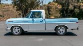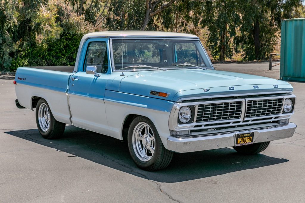 This 1971 Ford F-100 is powered by a 390ci V8 paired with a three-speed automatic transmission. The truck was acquired by the seller in August 2020 and was refurbished and modified under previous ownership with updates including halogen headlights, LED taillights, spray-in bed liner, a DJM lowering kit, an Edelbrock intake, a Holley 600 carburetor, a Flowmaster exhaust system, a JVC stereo, and Billet Specialties Vintec wheels.
