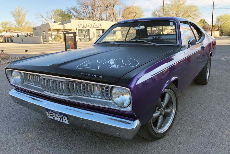 This 1971 Plymouth Duster began life as a six-cylinder coupe produced in Hamtramck, Michigan, and it was acquired by the seller in August 2013. The car was refurbished and modified by its previous owner in Colorado, and work is said to include refinishing the exterior in Plum Crazy, reupholstering the two-tone interior, and installation of a 440ci V8 paired with a TorqueFlite 727 automatic transmission. Additional modifications include 17″ wheels, interior updates, and front coilover suspension and Wilwood disc brakes.