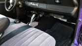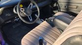 Staggered-width 17″ wheels feature a gray center finish and are fitted with Kumho Ecsta tires measuring 225/50 up front and 255/50 out back. Wilwood calipers are fitted up front along with QA1 coilover suspension components. The seller notes that the front wheels rub the wheel tie rods when the steering is at full lock.
