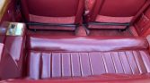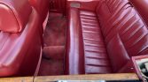 The cabin features burgundy leather upholstery on the seats, which extends to the lower dashboard and door panels. Wood trim and chrome details further aLent the interior. Amenities include power aLessories and an AM/FM cassette stereo with a built-in equalizer. The seller notes that the dashboard-mounted clock does not work.