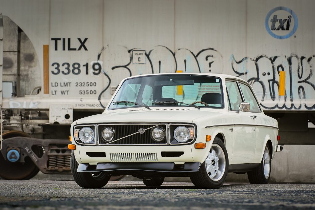 The 1971 Volvo 142E was previously owned by IPD founder Richard Gordon and was used as a development and test vehicle for the chassis. The body is finished in white, and power is provided by a modified 2,130cc B20 inline-four paired with an M41 four-speed manual transmission and an electrically actuated overdrive unit. Equipment includes a black leather interior, 15″ alloy wheels, Bilstein shocks, lowering springs, four-wheel disc brakes, a glass moonroof, a custom exhaust system, a…
